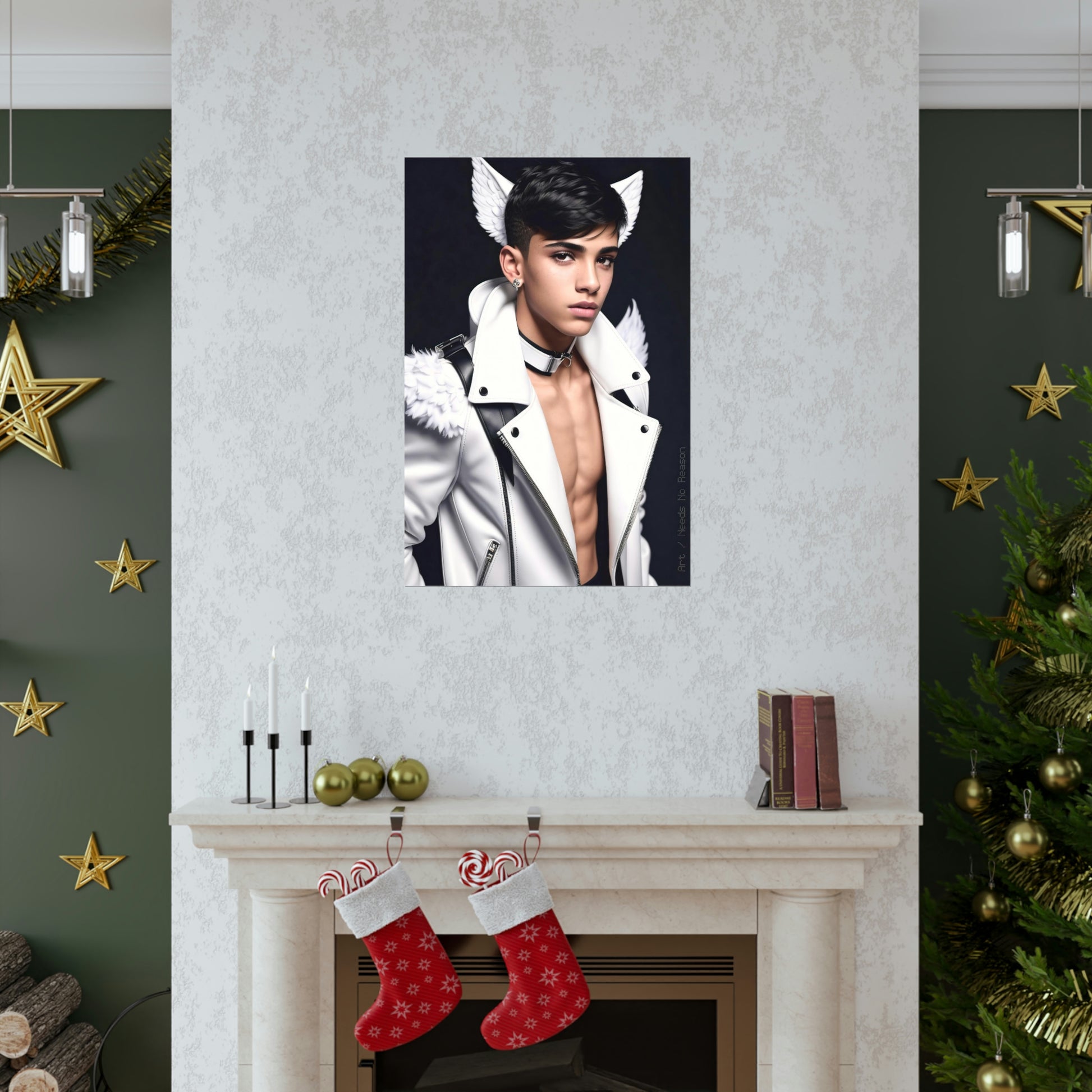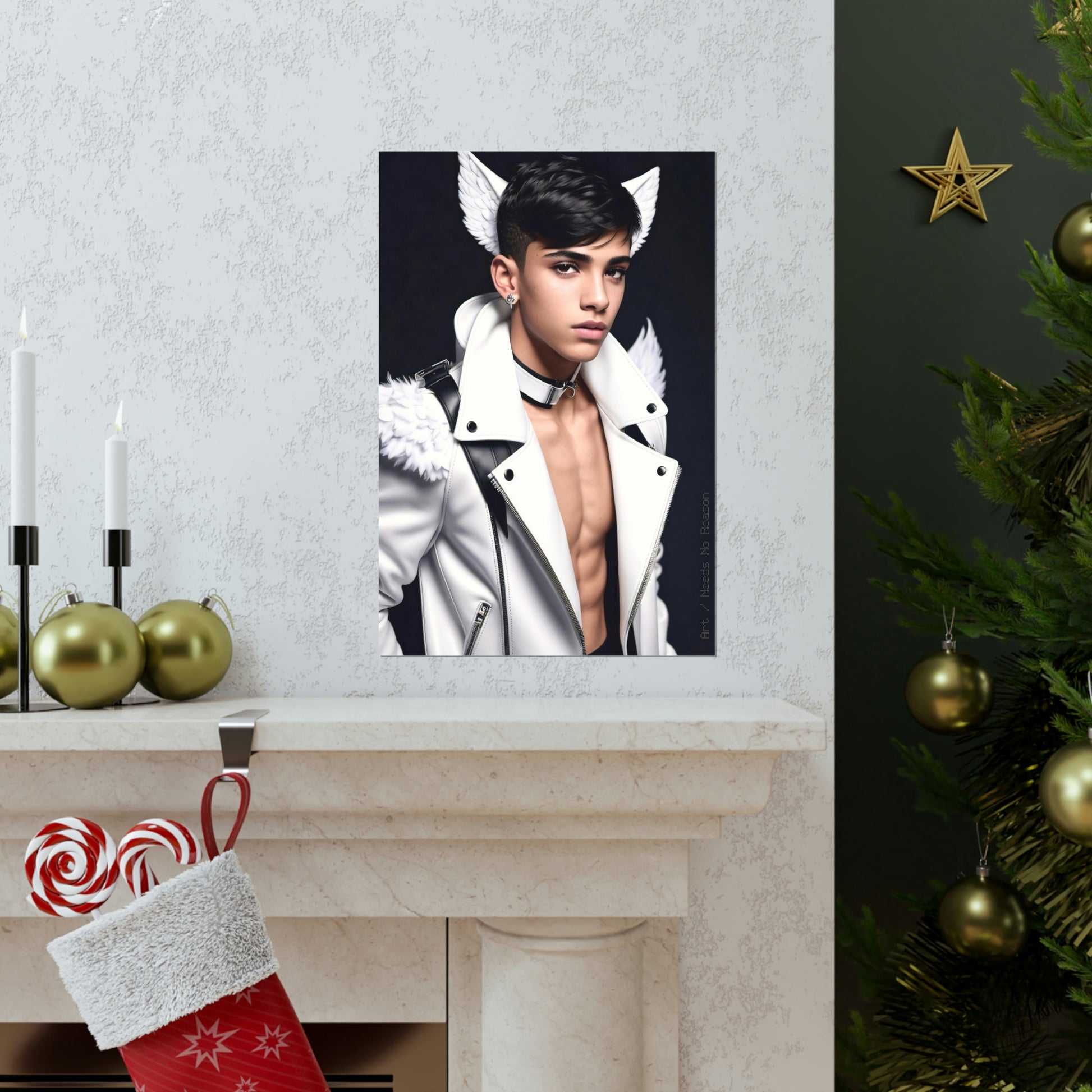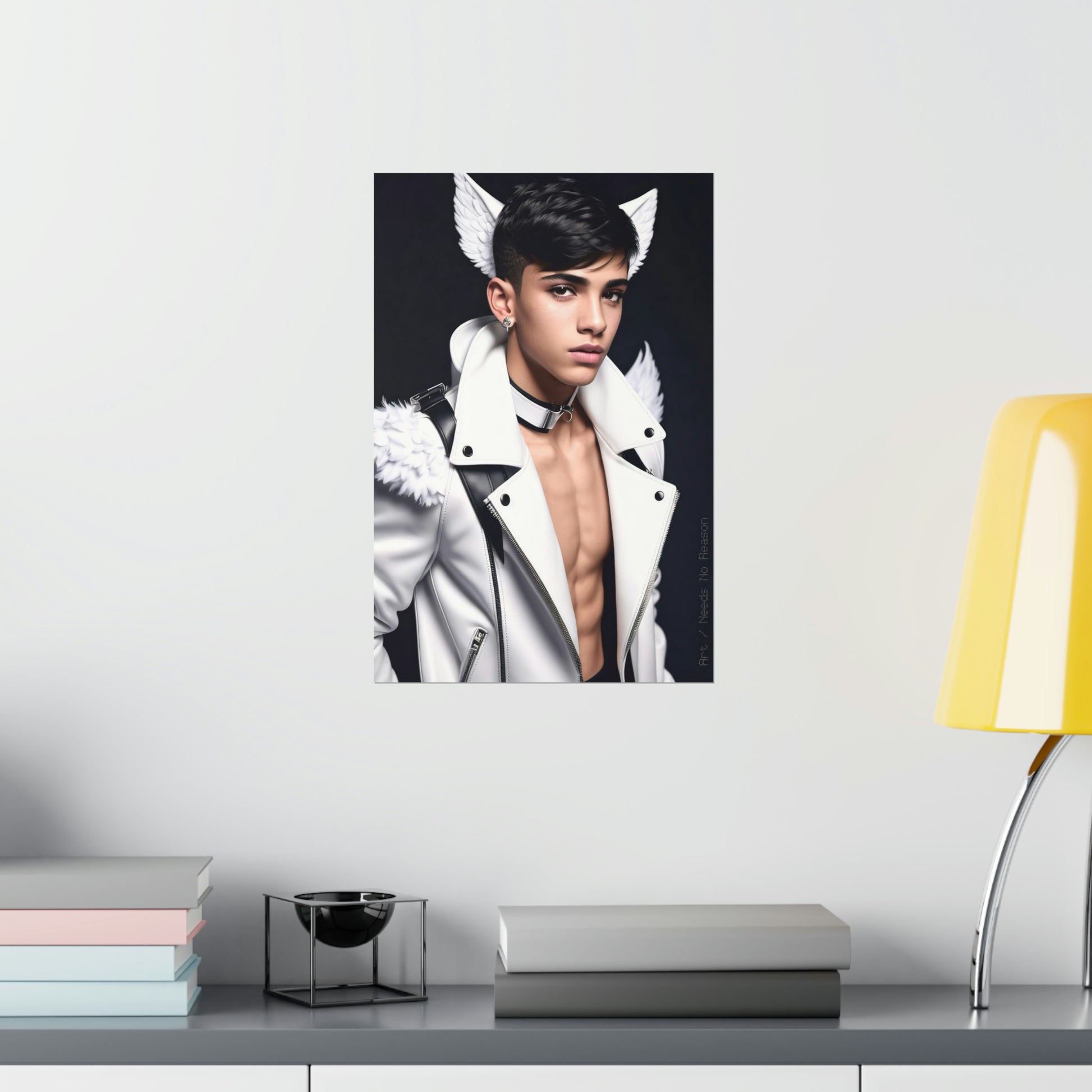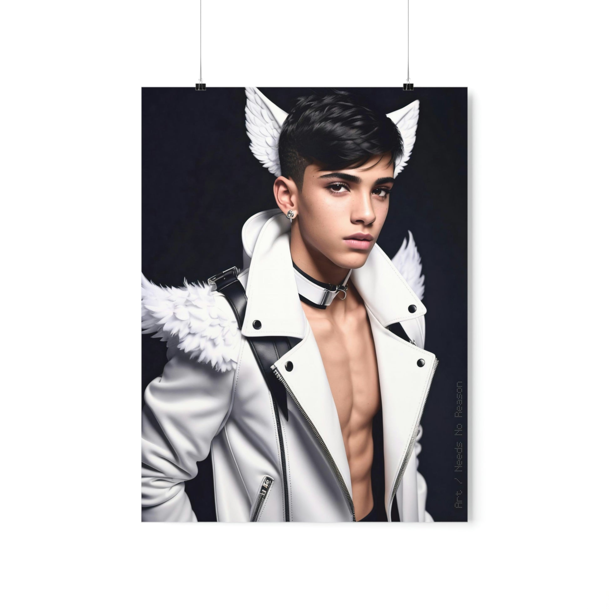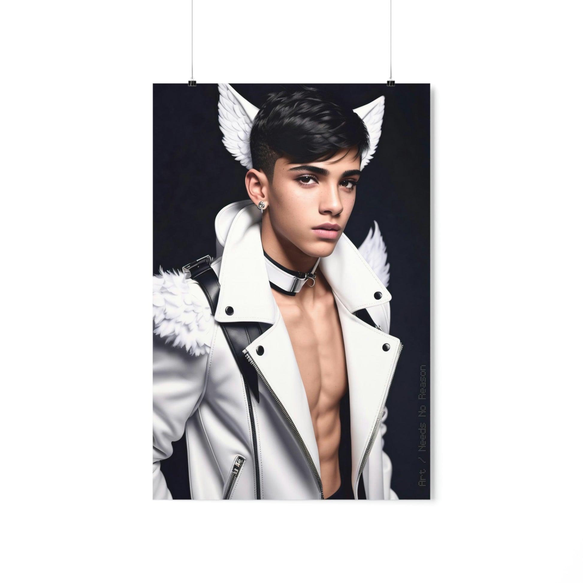 Premium matte vertical poster depicting a young person with angel wings.